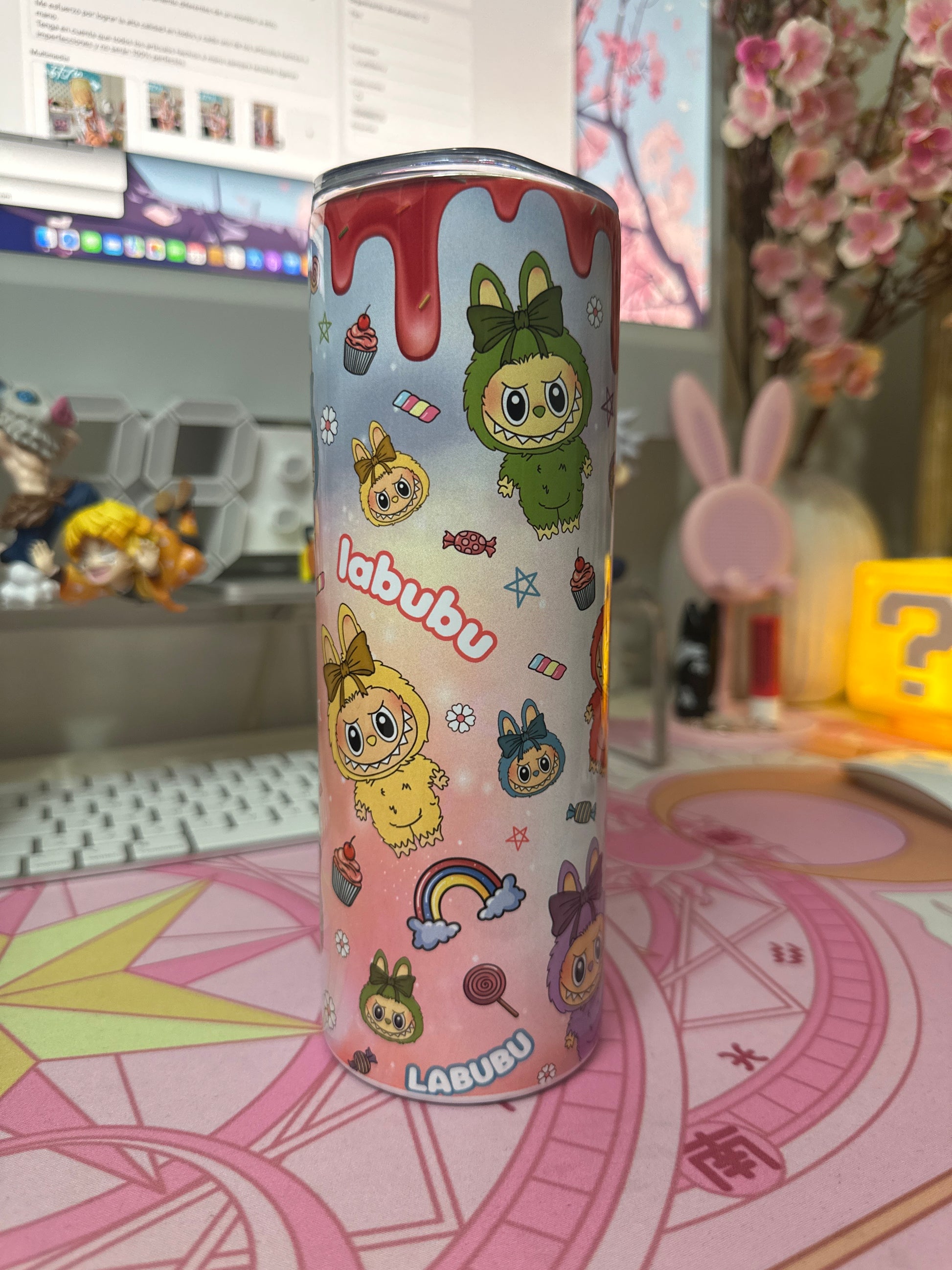 Viene con tapa de plástico, pajita de aluminio y un cepillo.
